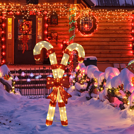 Lighted Candy Cane And Red Bowknot Christmas Decorations, Pre-lit 2D Holiday Decor With 100 Warm White LED Lights For Xmas Outdoor Indoor Decor Lighted Holiday Displays